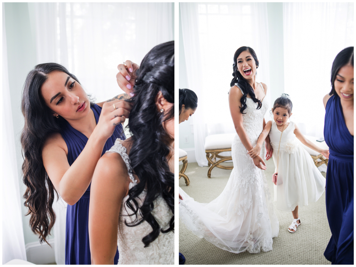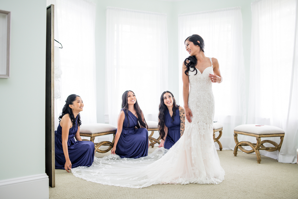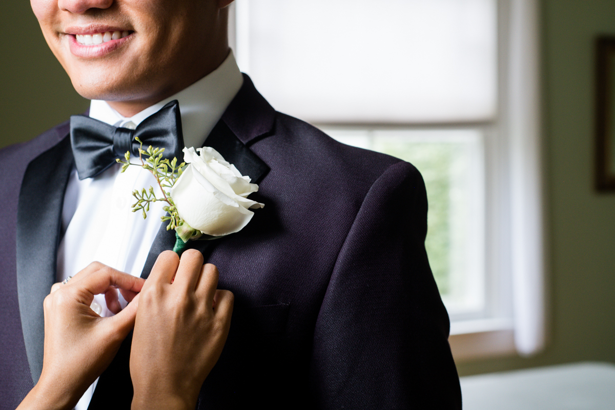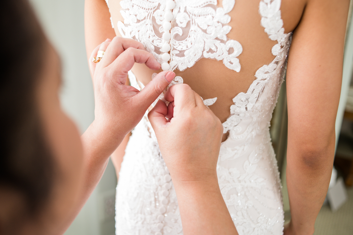 As Liza and Ed’s day started, the second floor in the manor-house was filled. Liza and her girls on one side of the hallway, as the groom and his guys proceeded to get ready on the other. It’s always fun to watch families come together and Liza’s family was no exception. Her family was really amazing to be around. They laughed, cried and even prayed together as the excitement of the day literally filled the air in the house. When all the preps were over, Liza stood there looking beautiful in her Essence of Australia wedding dress from Genevieve’s Bridal Couture