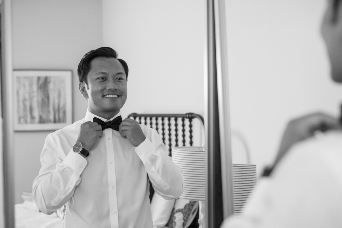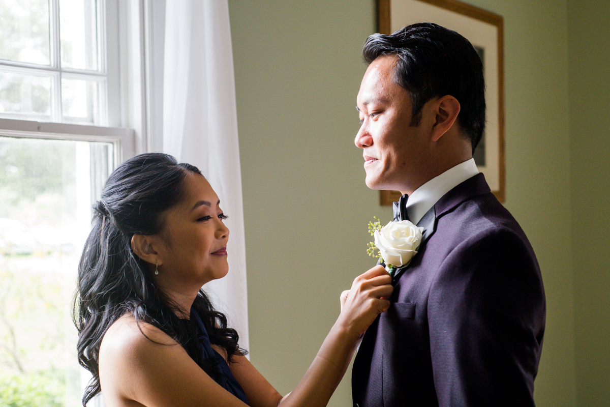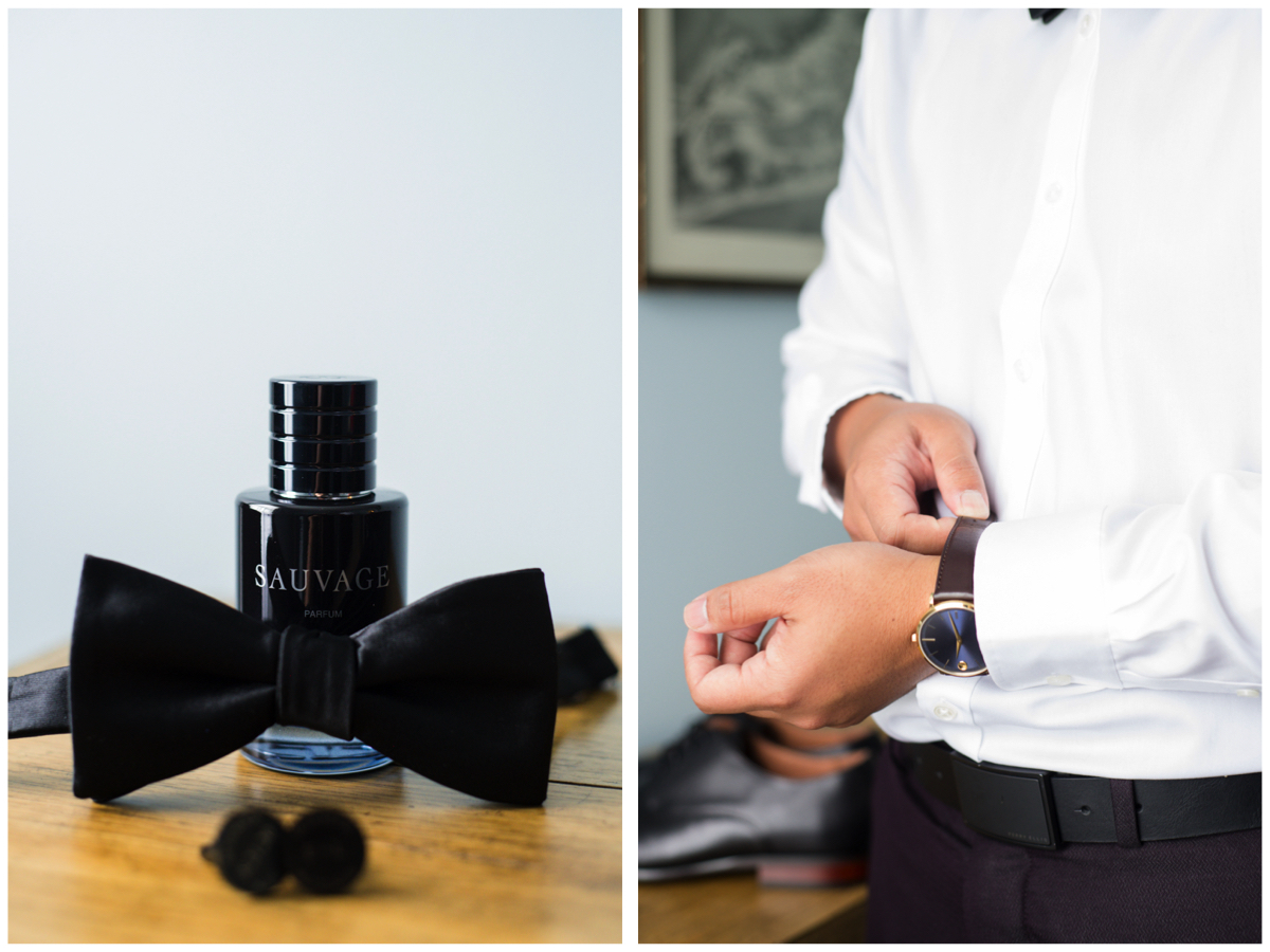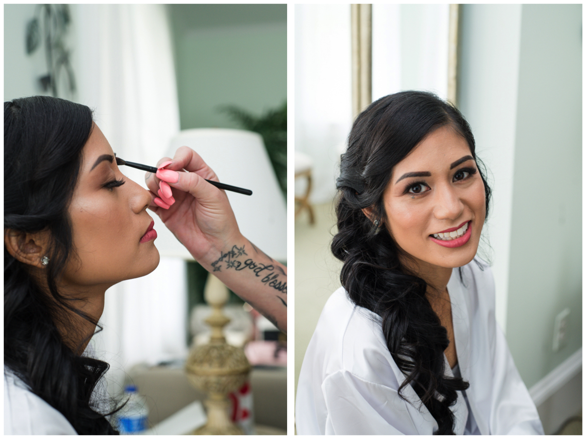 As Liza and Ed’s day started, the second floor in the manor-house was filled. Liza and her girls on one side of the hallway, as the groom and his guys proceeded to get ready on the other. It’s always fun to watch families come together and Liza’s family was no exception. Her family was really amazing to be around. They laughed, cried and even prayed together as the excitement of the day literally filled the air in the house. When all the preps were over, Liza stood there looking beautiful in her Essence of Australia wedding dress from Genevieve’s Bridal Couture