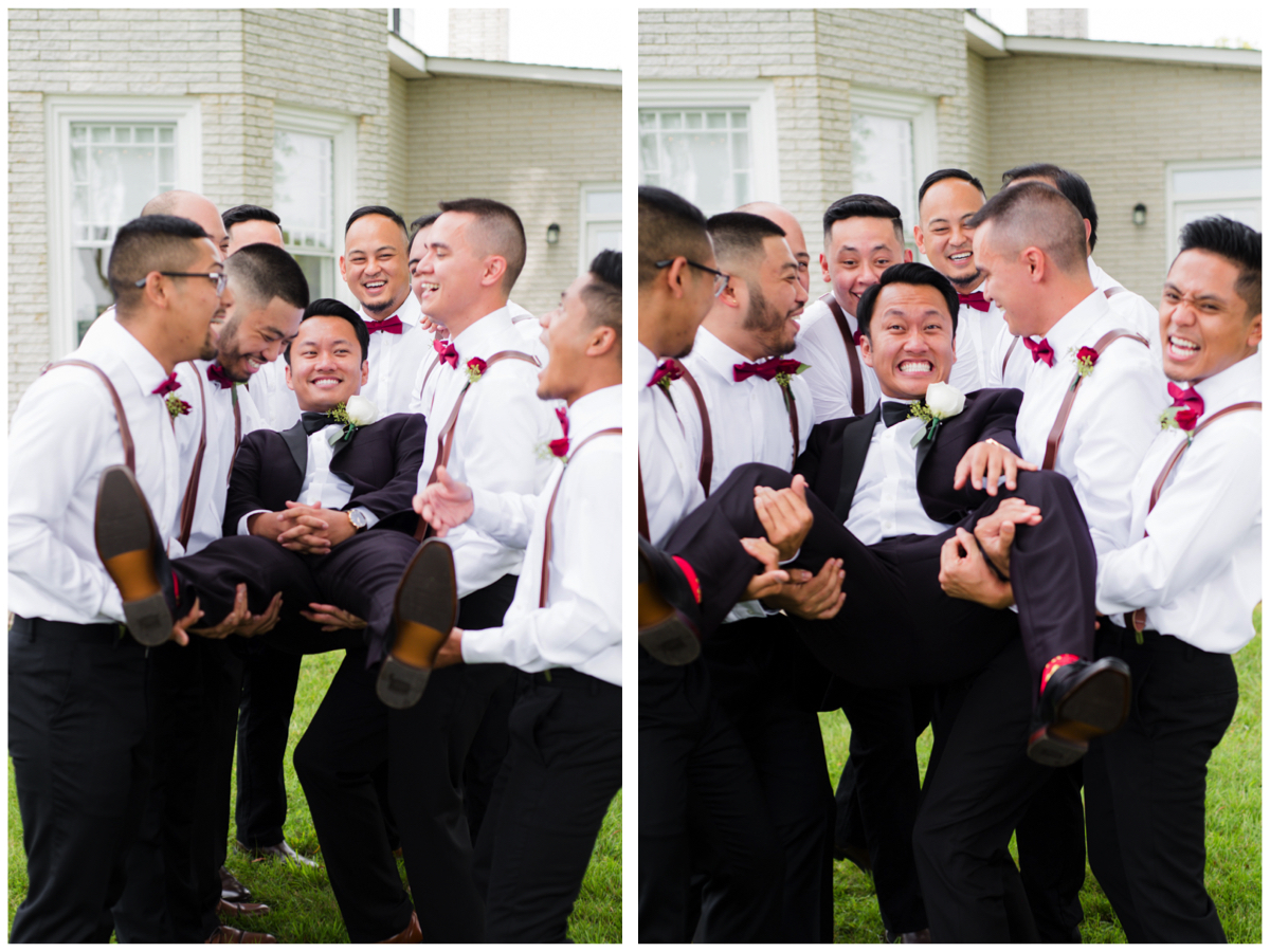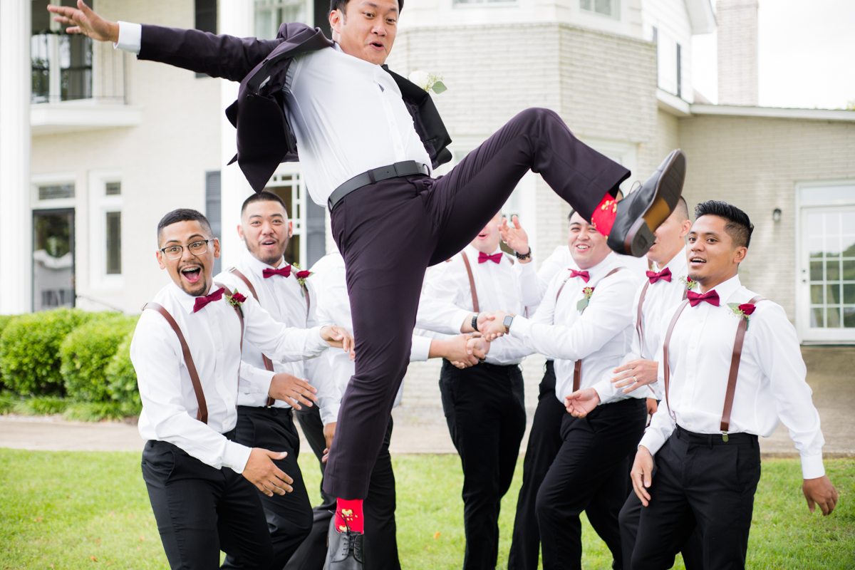 Across the hall Ed and his guys got dressed. With themed socks, each had such big personalities. Therefore, we couldn’t resist a few fun moments with the boys outside…and YES! The guys did drop Ed while they were throwing him into the air. LOL! Thankfully, no broken bones. And off to the church they went! Leaving Liza run of the house for some additional beautiful photos with her beautiful bridesmaids.