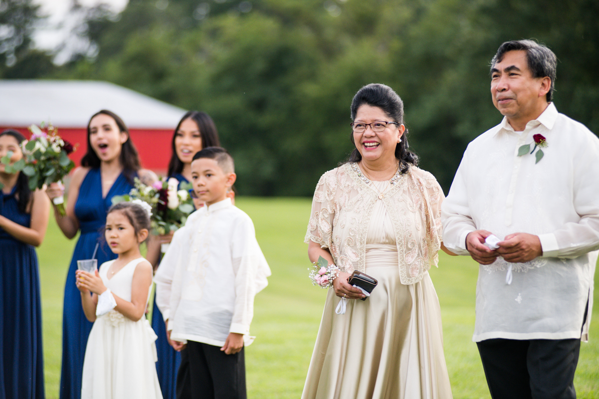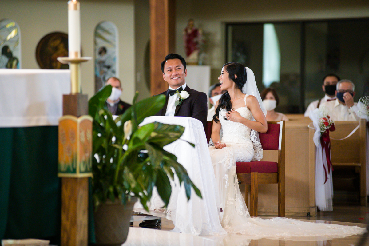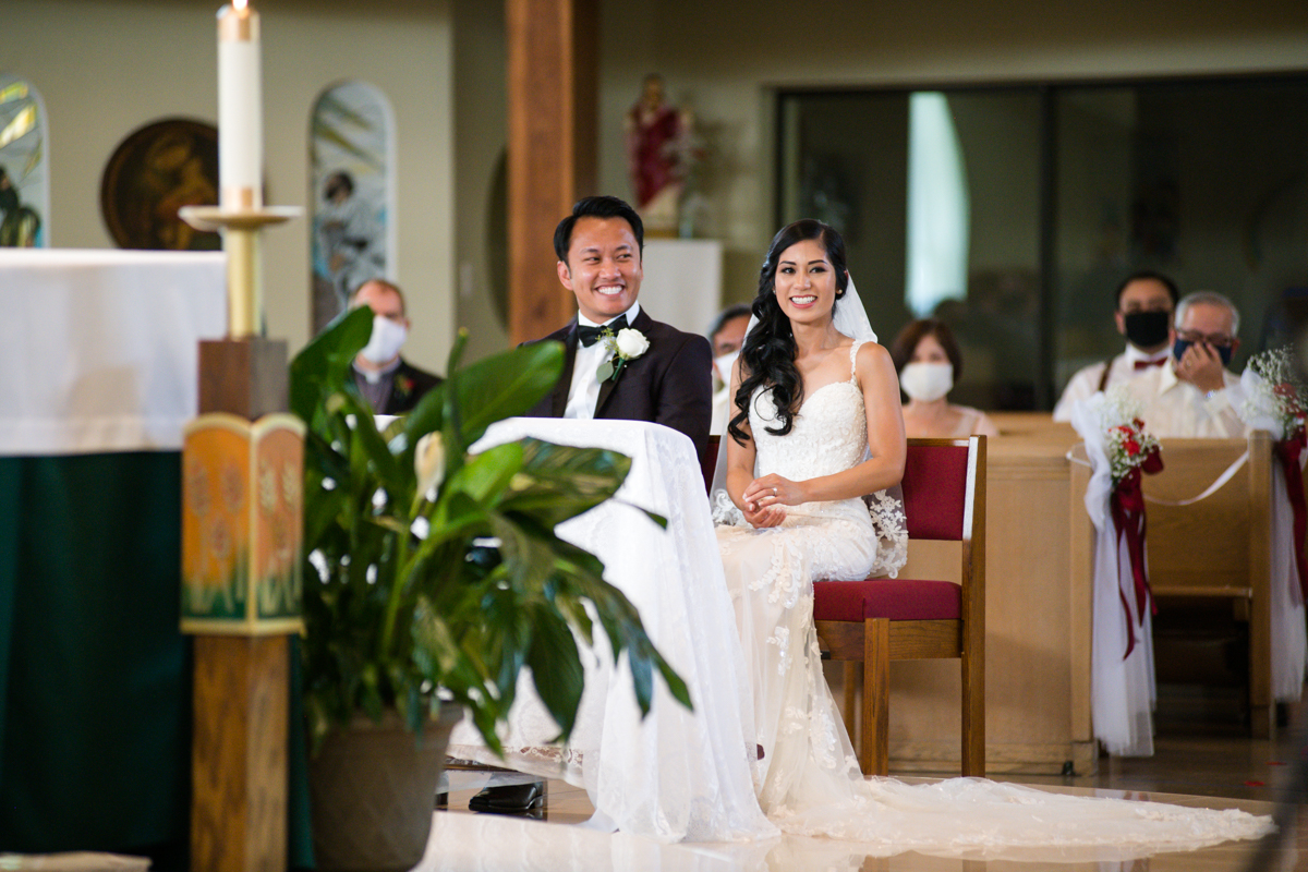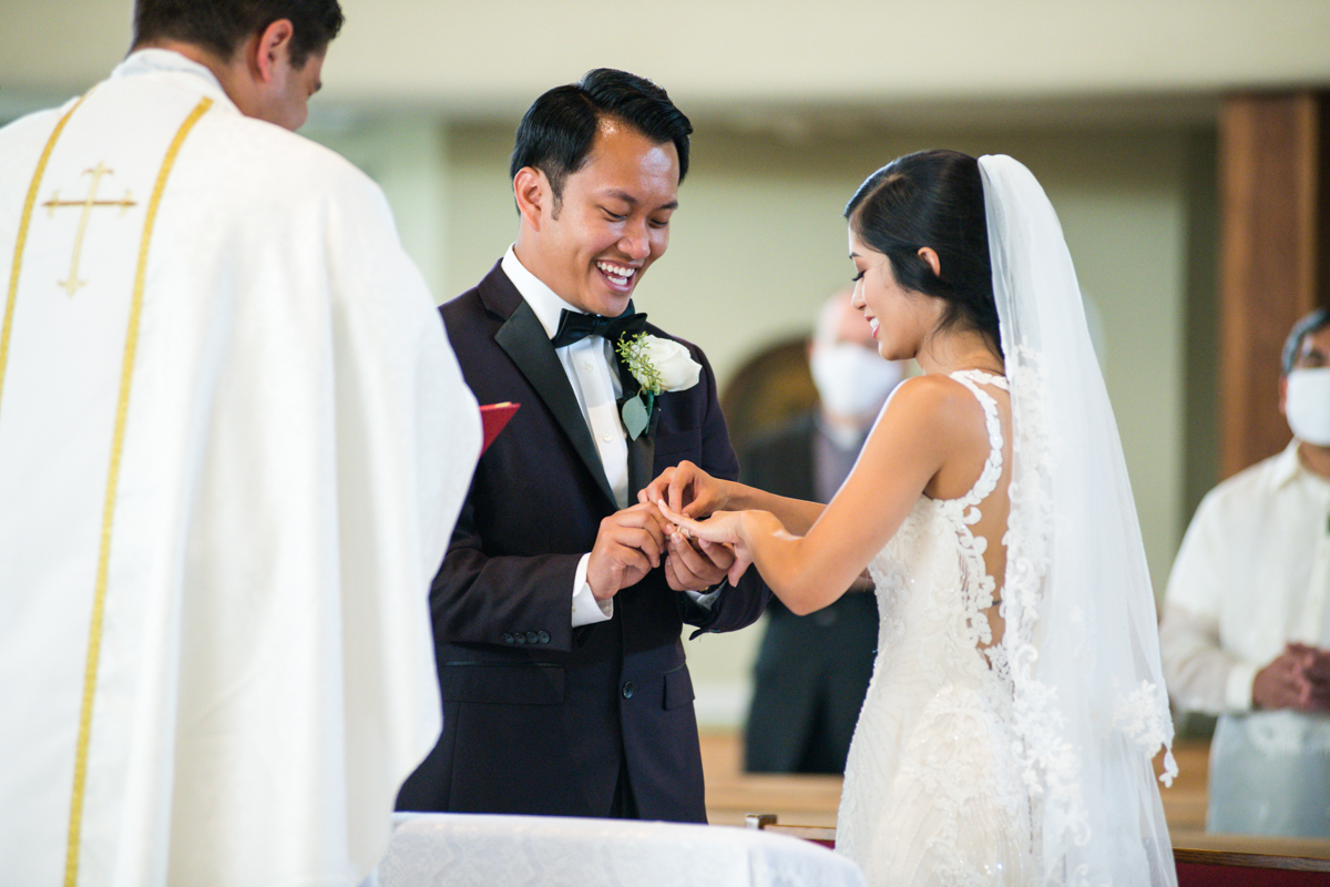 Ed and Liza had a Catholic mass at their family’s church, Immaculate Heart of Mary in Lexington Park, Maryland. Their ceremony also included cultural traditions which we love. Liza and Ed honored their Filipino heritage with a veil and cord custom. A veil is draped over the couples followed signifying they are now one. Followed by a cord loosely placed around the necks of the couple creating a figure-eight. The symbolic meaning is a lifelong bond and fidelity between the couple. They also had the 13 Arras, coins brought to the altar. This custom signifies the groom promising welfare (prosperity) to his future wife and family.