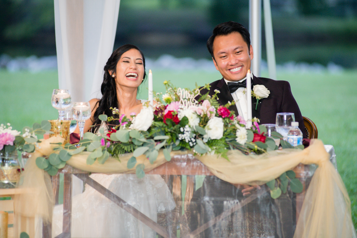 As the reception started everyone was in great spirits. The couple coordinated for every table of guests to stop for a group shot as they made their way to grab their dinner. We absolutely loved this idea and are going to recommend it to more couples. It’s a fantastic way to get a photo of everyone in attendance.