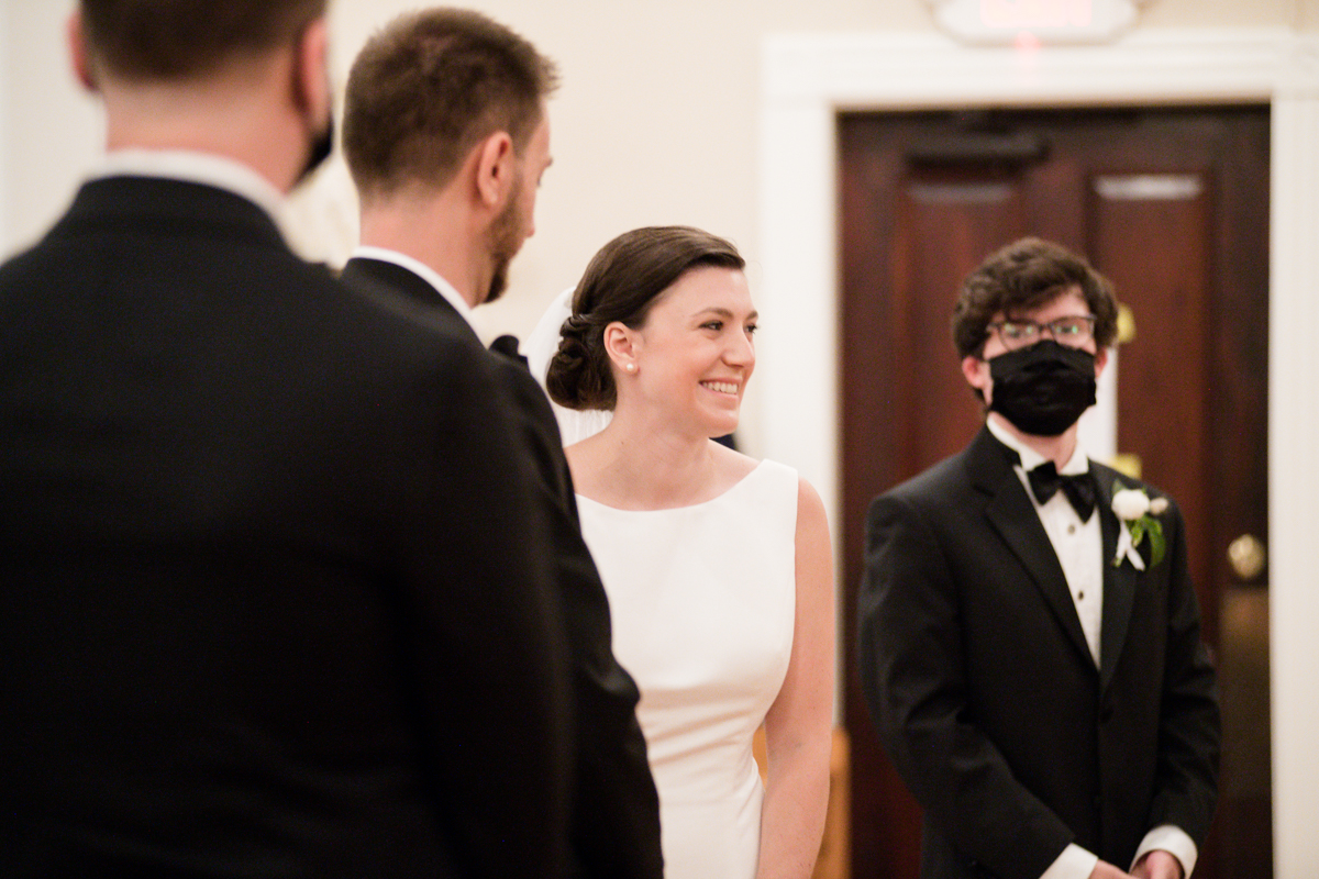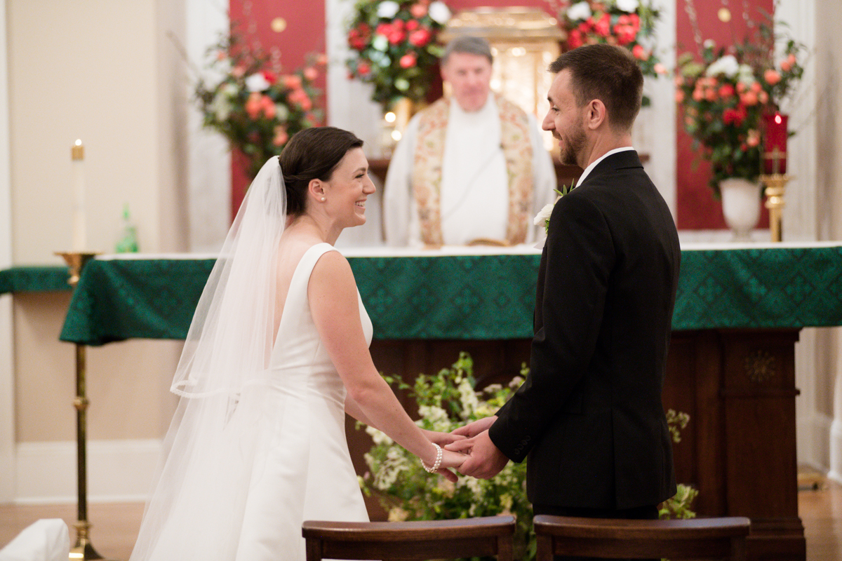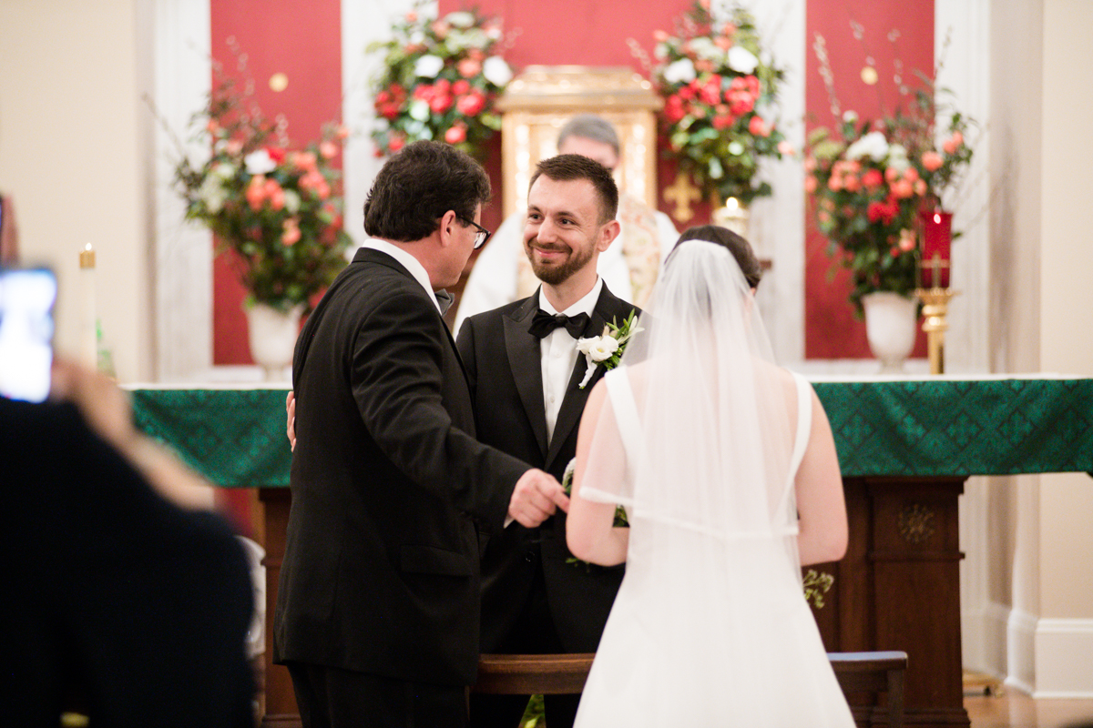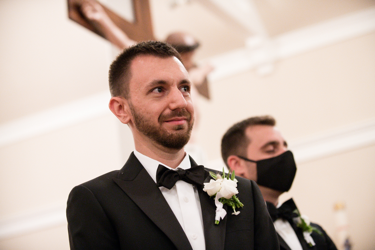 Emily chose a Sareh Nouri wedding dress from A Little Something White Bridal Boutique. The dress, OMG! How stunning! It was delicate and dignified, and fashionable and luxurious. Emily truly lit up the church as she walked down to meet her husband to be. Joe stood handsomely tall in a modish stance.